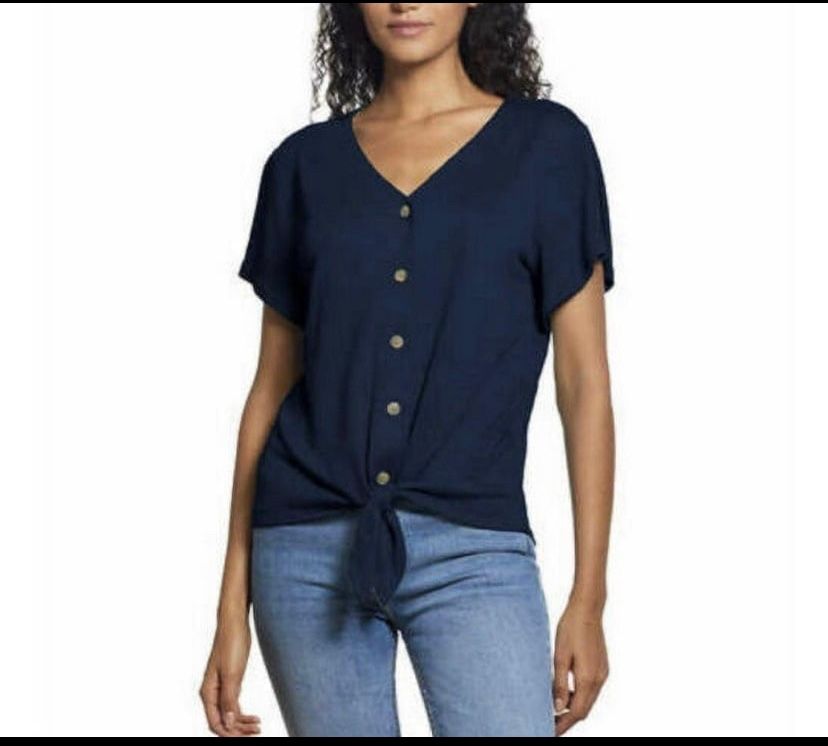 New with tag beautiful button up shirt Weatherproof Vintage Short sleeve V-neck Button-front Tie knot at waist Made in China 67% Polyester, 32% Rayon, 1% Spandex #8