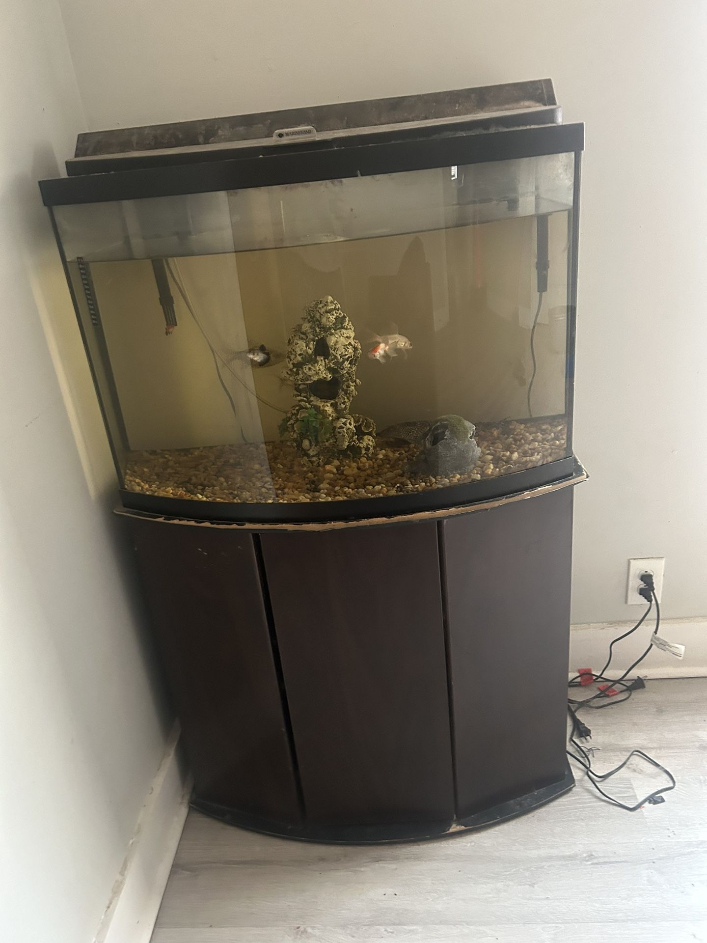 40 gallon tank and stand. Has air mover 2 filters , decor, rock , stand etc. everything included. No longer wanted.