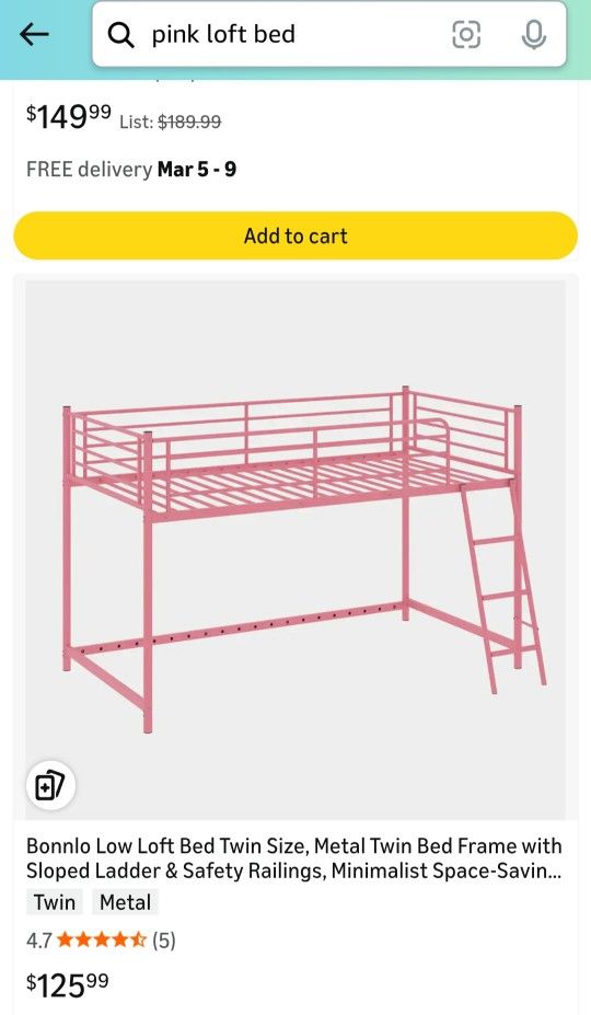 Pink Twin Bed Frame with ladder