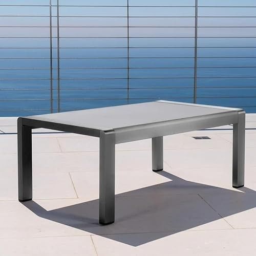New - Cape Coral Outdoor Aluminum Rectangle Coffee Table by Christopher Knight Home Retail on overstock $171.99 - This outdoor coffee table is a stylish addition to any patio decor you currently have. Made from top quality aluminum and glass, this table is sure to impress. Featuring smooth lines and a clean finish, this coffee table is the perfect table to have in your outdoor patio. Use it while gathered around on your couch outside, or while you host as a great place for your guest to place their drinks and small plates while they converse with one another. Includes: One (1) coffee table Frame Material: Aluminum Tabletop Material: Tempered Glass Dimensions: 23.50 inches deep x 39.25 inches wide x 16.00 inches Weight Capacity: 250 lbs
