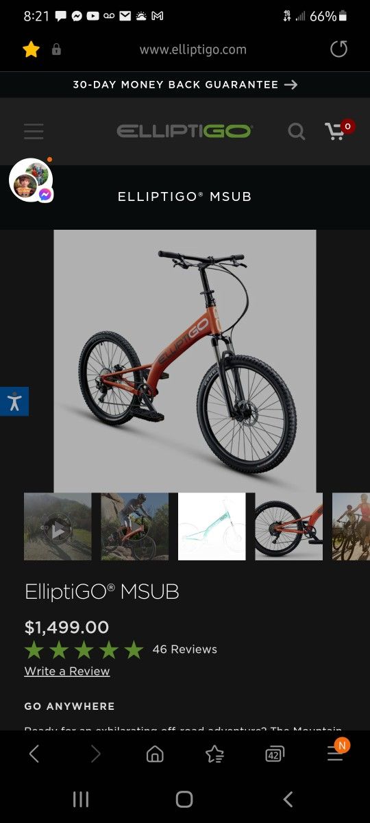 Selling a brand new Elliptigo bike, retails for $1500. Had a lower back incident which prevents me from using it. Would rather sell it and others to enjoy it than collect dust. Could also be used as stationary but accessory is sold separately. https://offerup.com/redirect/?o=aHR0cHM6Ly93d3cuZWxsaXB0aWdvLmNvbS9wcm9kdWN0L2VsbGlwdGlnby1tc3ViLw==