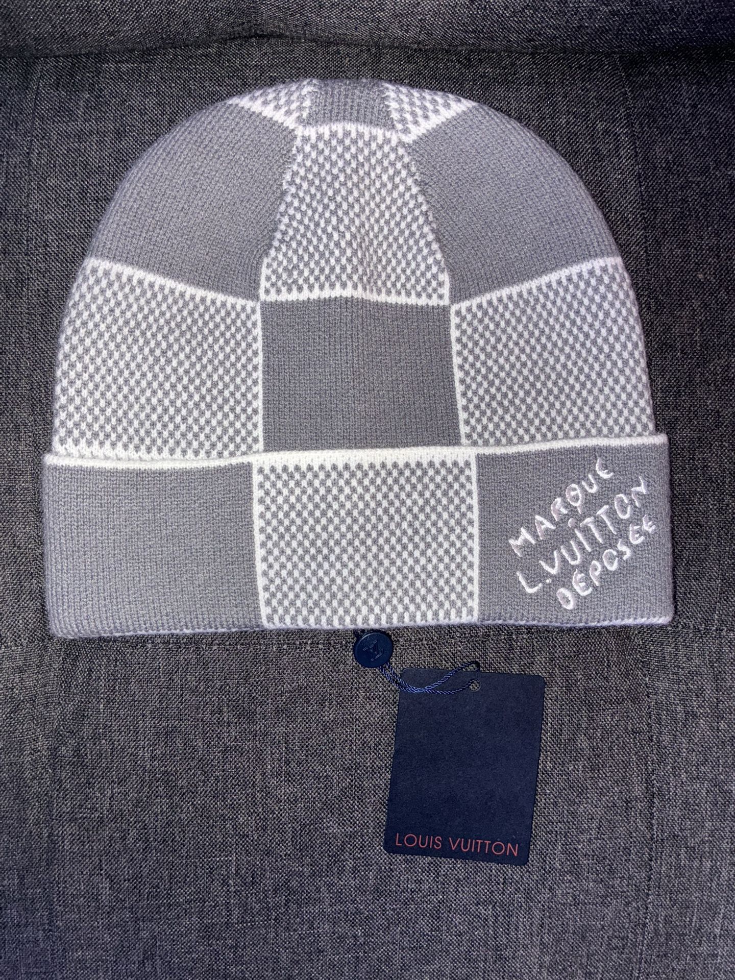 Grey and White LV Beanie Nice Monogram styling Dm me for any questions!