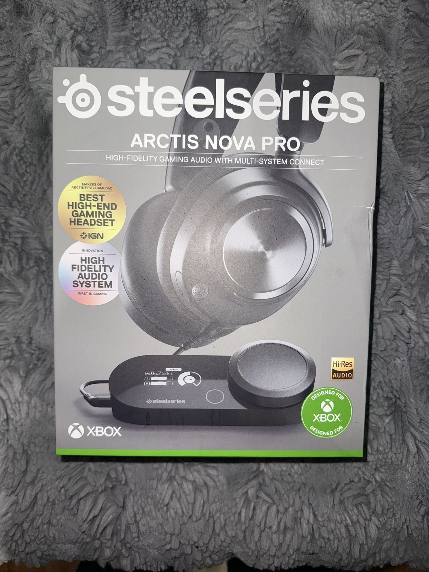 SteelSeries Arctis Nova Pro wired gaming headset for Xbox. The headset itself is new and unused, but the outer box is damaged (see photos). Contents inside are intact. This is a premium, high-fidelity gaming headset with the GameDAC system — great for competitive gaming, immersive audio, and streaming. Features: • Designed for Xbox Series X|S & Xbox One • Also works with PC & PlayStation via multi-system connect • Hi-Res Audio certified • GameDAC with multi-system switching • ClearCast Gen 2 noise-canceling microphone • High-end SteelSeries sound & build quality • Winner of “Best High-End Gaming Headset” (IGN) Perfect if you want top-tier audio and don’t care about box condition.