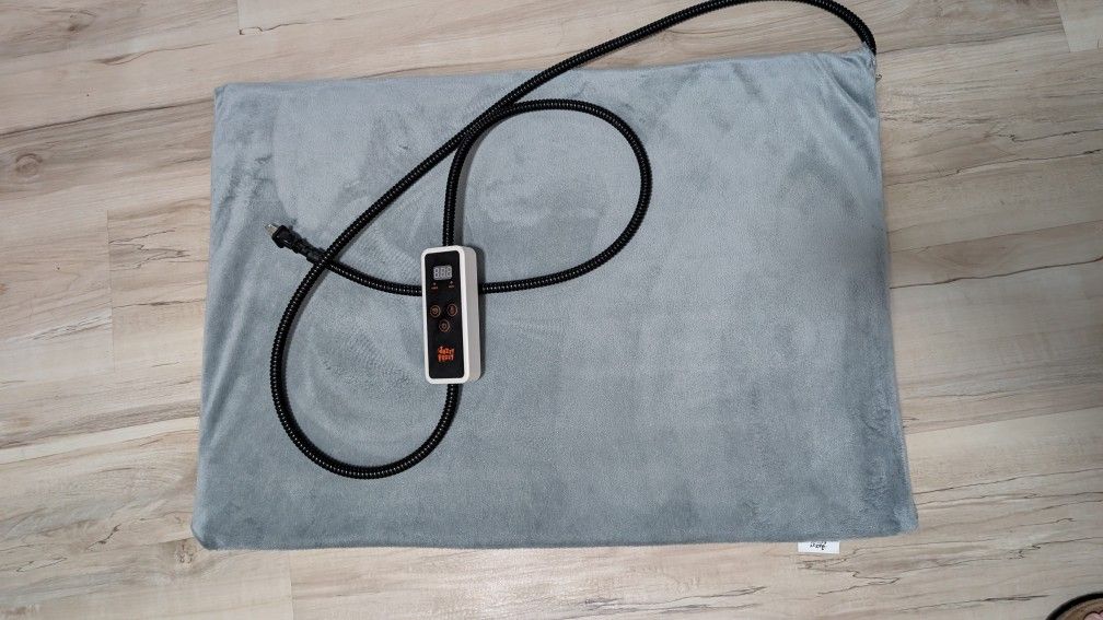 My dog didn't prefer this over his other sleeping options, like new. I also just washed the cover so it's clean for the next pup or cat. 28 x 20 in Product Description: Versatile Mode Selection: Choose from always-on, 5-level timer (2H/4H/8H/12H/24H), and pressure activated pet heating pad modes. With three adjustable temperatures (95℉, 104℉, 113℉), it caters to the unique needs of your pet, whether it's a heated dog blanket or a cat heating pad.