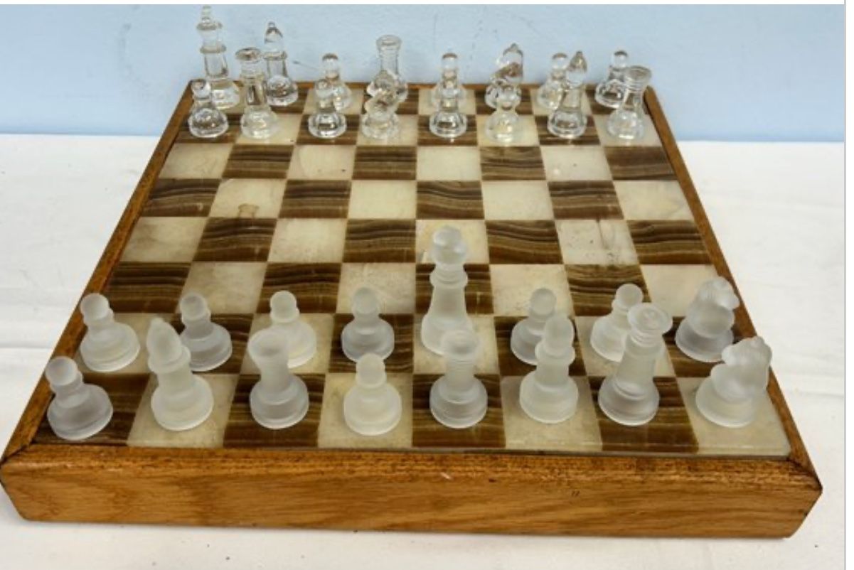 VINTAGE CHESS FROSTED AND CLEAR GLASS PIECES