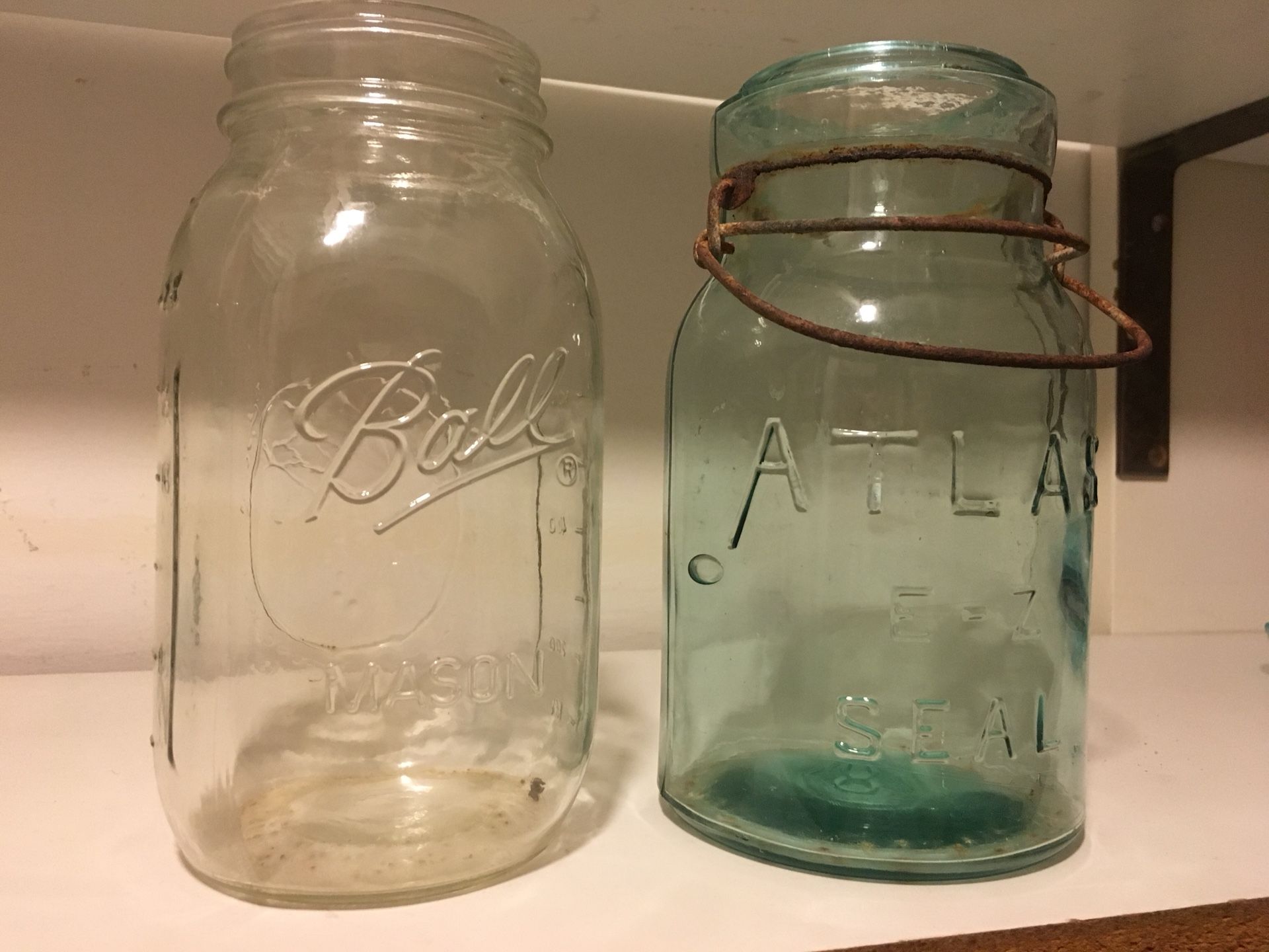 Collected from various antique stores for wedding reception vases; assorted sizes though most are standard small-mouth jars, both Ball Mason and Atlas. Asking $20 for the set.