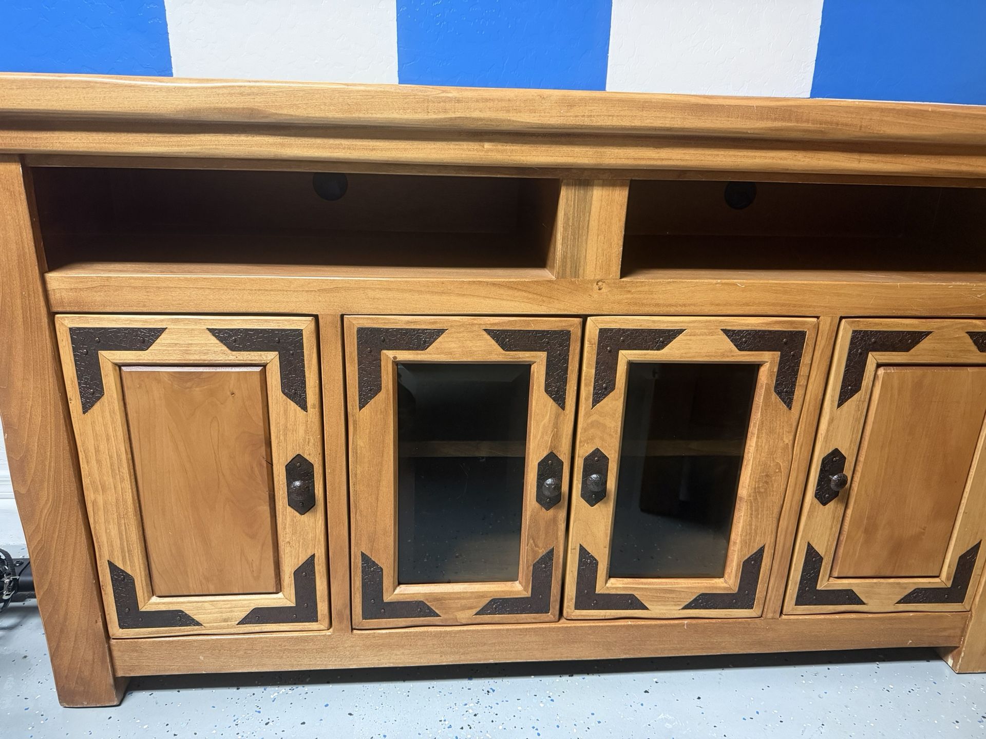 Solid wood entertainment and end tables . Need to sell. No room to store. In good condition, Asking 100 for all 3 pieces