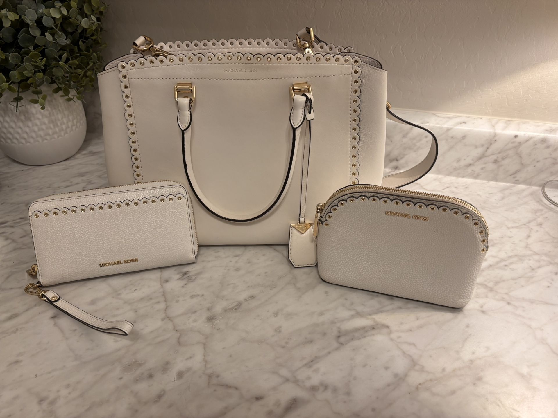 Like New Michael Kors Scalloped Bag, Wallet & Makeup! White!