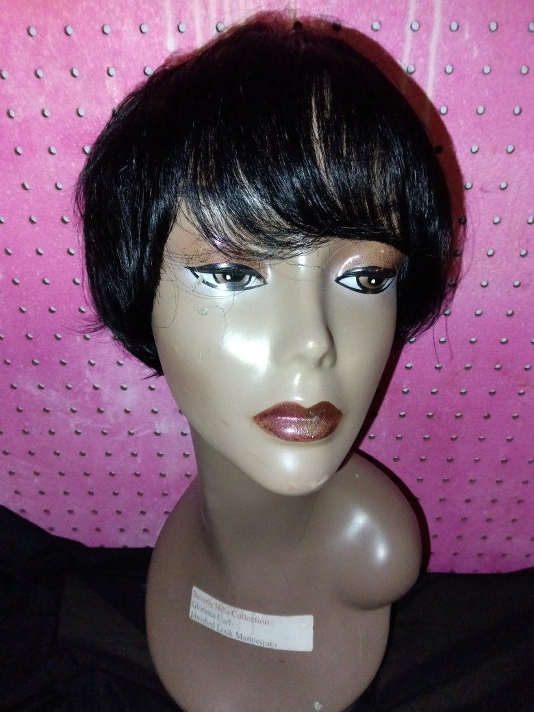 New unused short Remy human swoop bang pixie cut hair wig, is very thick , layered A+++, no shed or tangle, color natural and black, long lasting cuticle hair, fullvoluminous, swoop bangs unit can , dyed, permed, curled or straightened. It is a medium cap, fit as ny head size flawlessly, glueless no installation is needed just put on and go.