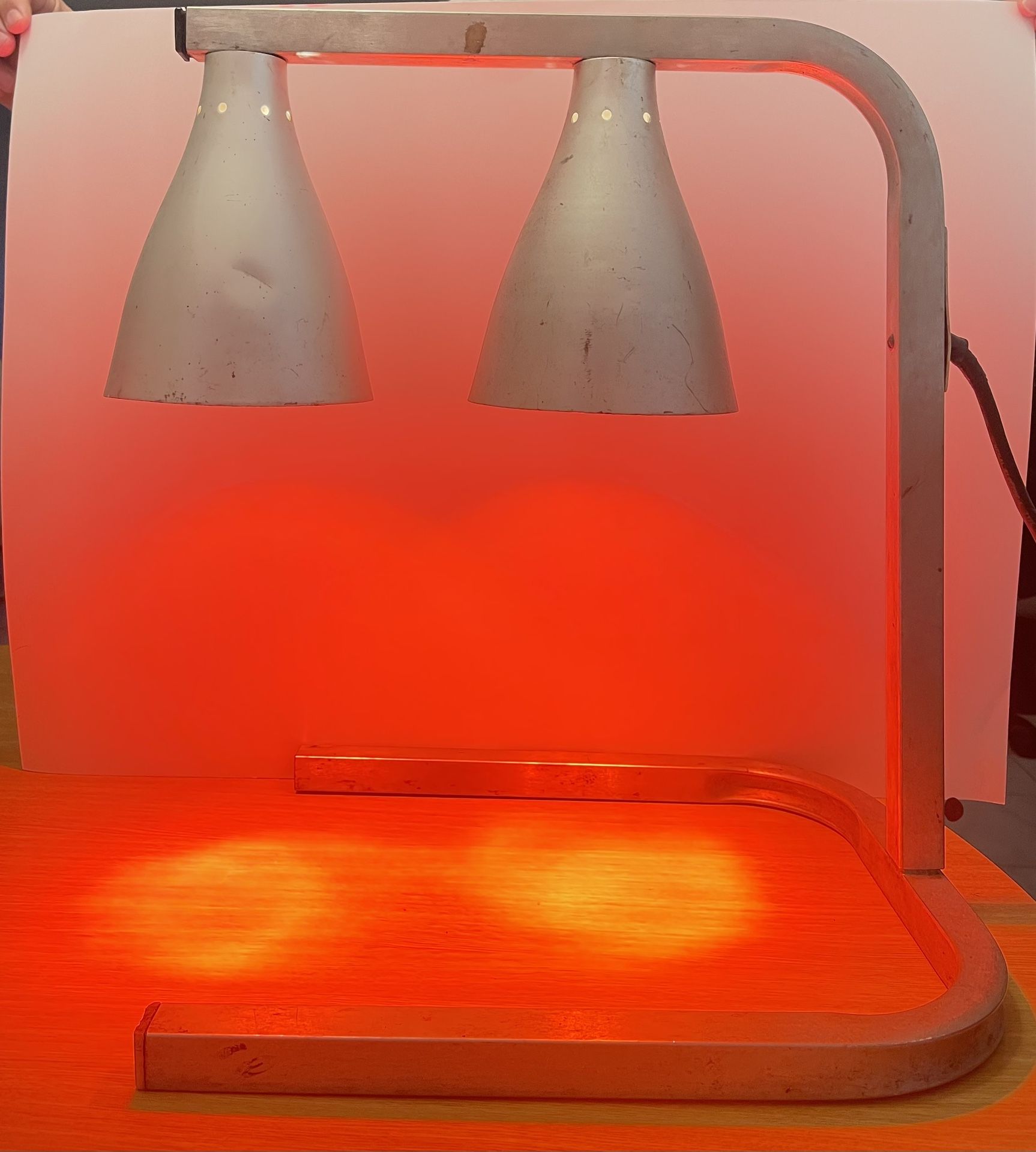 Used Light switch doesn’t work Includes two 250 watt Philips Heat Ray Infrared light bulbs Meant to keep fries or other food heated