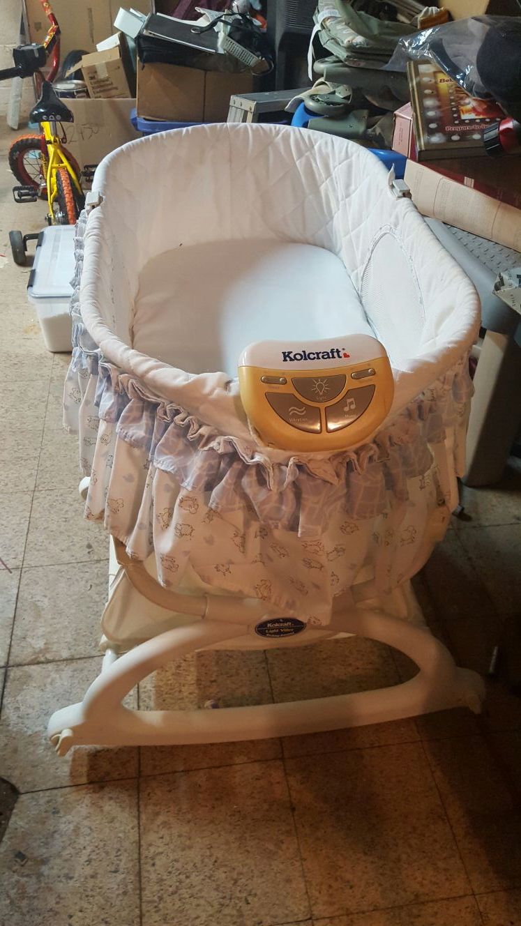 Kolcraft Bassinet. Bought new for $95. $30 takes it. Used, still works fine. Light and music box needs new batteries.