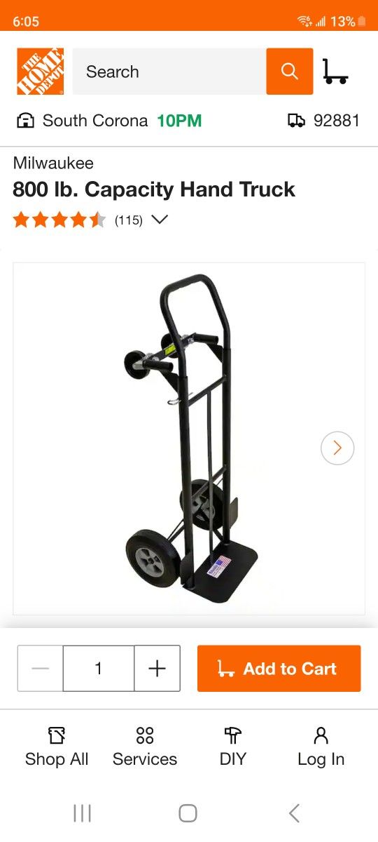 Hand dolly in excellent condition. Can be use upright position or 4 wheel position as shown in pictures.