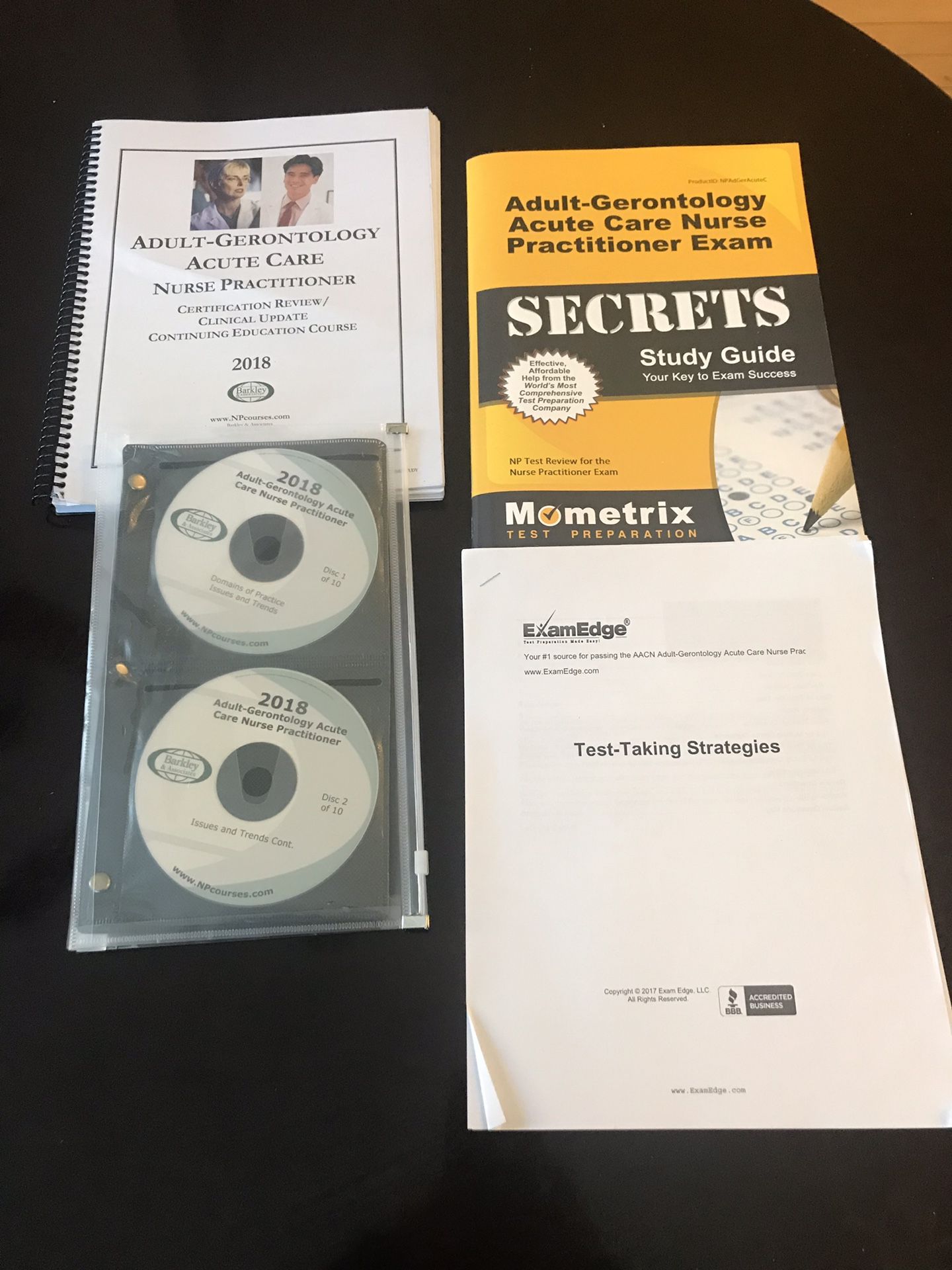 —2018/2019—Most current edition— ***NOTE: This is NOT Family Nurse Practitioner (FNP), it is Adult Gerontology Acute Care Nurse Practitioner (AGACNP)*** MSRP: $449.50 on Barkley website {url removed} - Includes good condition review book with NO missing or stained pages. There is a fold on the front laminated cover and there have been light penciled areas in book but other than that condition is good. - All 10 discs are INTACT and 100% functional (I suggest burning them to iTunes and listening to them constantly during your work outs or long drives to work; that is what I did). - Durable, protective plastic sleeve for all CDs to sit nicely in - ALSO INCLUDED: AGACNP Secrets Study Guide: Your Key To Exam Success by Mometrix. MSRP price = $43.99. {url removed}