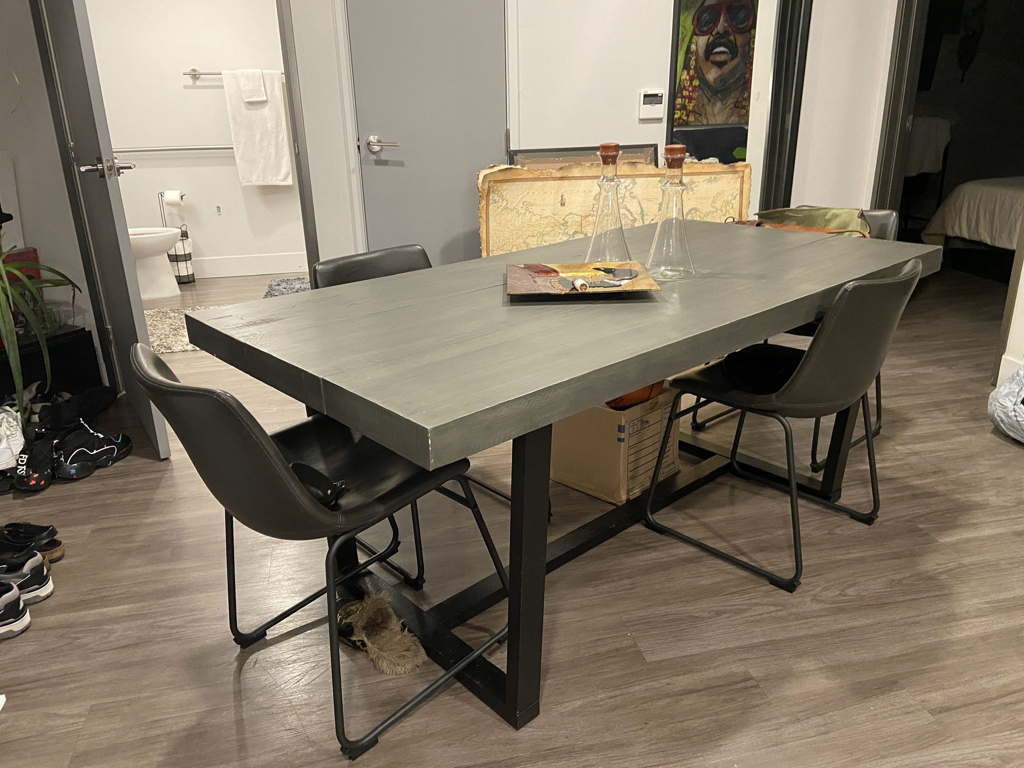 Grey wood dining table w/ chairs Sturdy Durable 77” x 33” x 35”