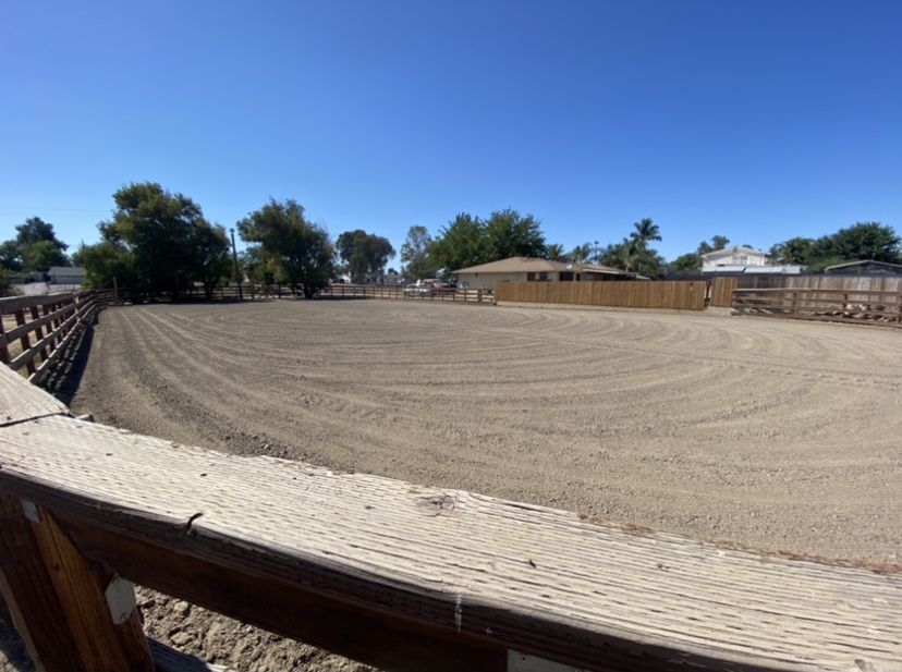 Includes feeding 3x a day, daily turnouts, stalls cleaned daily, water buckets scrubbed daily. We feed teff and alfalfa. If you’d like something else we can get it. Also includes grain and horse guard if you’d like. If not then board will be cheaper. Arena is 180x80. We are a 5 min haul to the grasslands. You can ride to Tractor supply and other places. Pm me for more info