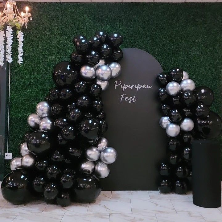 All black with a touch of silver. Message us to create your customized Backdrops. Please include city and date of event. Add us on IG @bloompartiesdotcom