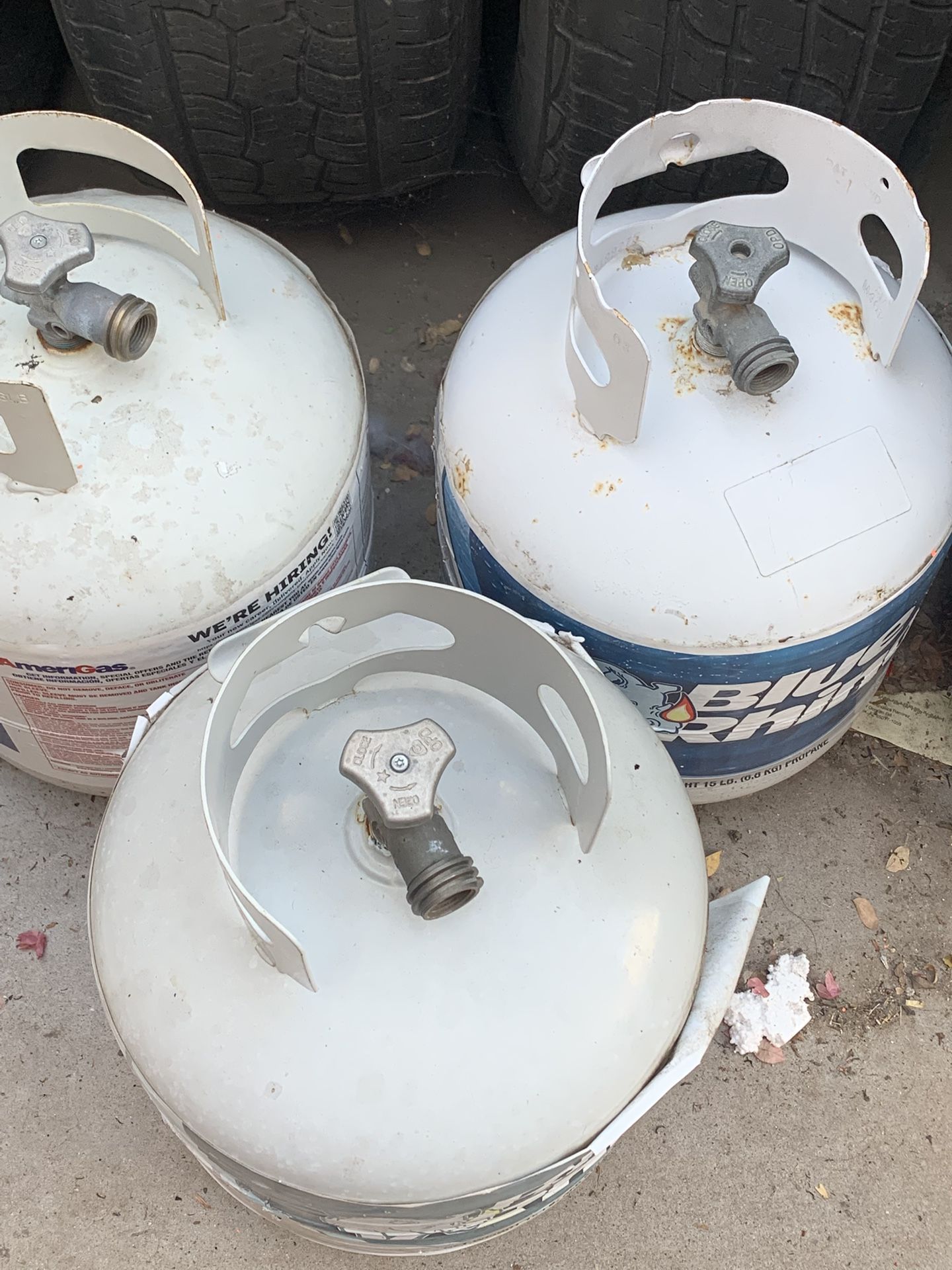 $35 EACH (Cada Uno). Propane Exchange Refill (Empty) (Vasios) Price is firm exact change only No Zelle or cash app or Venmo or Apple Pay Propane Gas Tanks Tanques BBQ Grill Patio Heater Fire Pit Asador Good Condition cash only