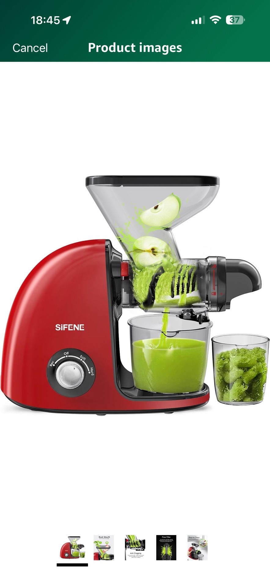 Masticating Juicer - Cold Press, Dual Mouth, Anti-Clog, Quiet, BPA-Free, Red