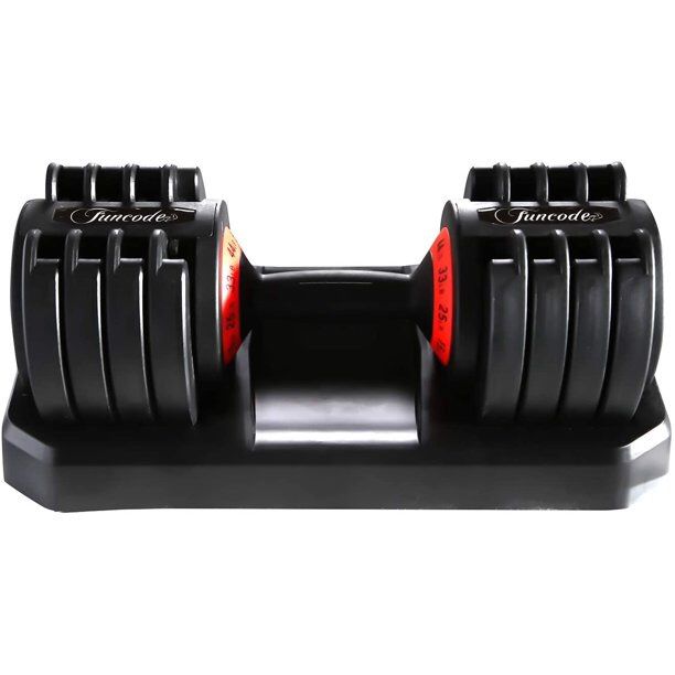 MULTI-WEIGHT SETTING:One set for 5 weight options. Adjustment weights from 6.6lbs to 44lbs. One set comes with 1 dumbbell-44lbs total:One 6.6lbs handle,eight 4.4lbs plates and one 2.2lbs dumbbell seat. Adjustable dumbbell supports diverse strength training by changing different weights. No need of multiple purchases for different weights. MULTIFUNCTION DESIGN: This all-in-one dumbbell allows you to have a comprehensive exercise experience. This dumbbell can be used to lift your arms or tone your back. It is perfect for body shaping, overall health, or even weight loss. It can also help strengthen your upper body or core. The adjustable design makes it easy to stay fit at home. NON-SLIP SAFE DESIGN: The slip-resistant texture allows you to feel safe and be worry-free while doing your workout. Both the rough and upgraded curve-shaped handlebar allows for a better grip so you can improve your coordination and avoid any injuries or accidents. EASY WEIGHT CHANGE: Funcode adjustable dumbbell comes with removable weight plates that allow you to set your desired weight. Lift the locker and change your weight at any time during your exercise. A Pair for $140 WORRY-FREE PURCHASE: We value your trust and we want to make sure that your purchase is risk-free. Our Adjustable Dumbbell Set comes with a 30-Day warranty for manufacturing defects. Please contact us if the product you purchased from us has failed your expectation. All inquiries will be responded to within 24 hours.