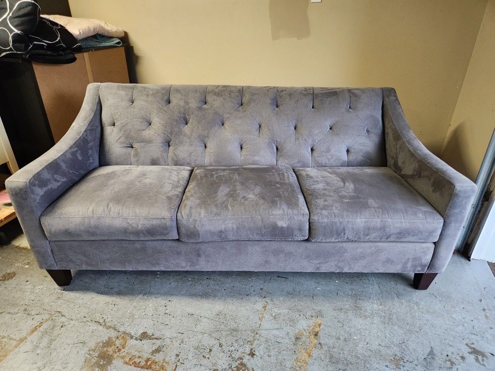 Modern Macy's MAX HOME Grey Tufted Back Sofa-Excellent Condition!