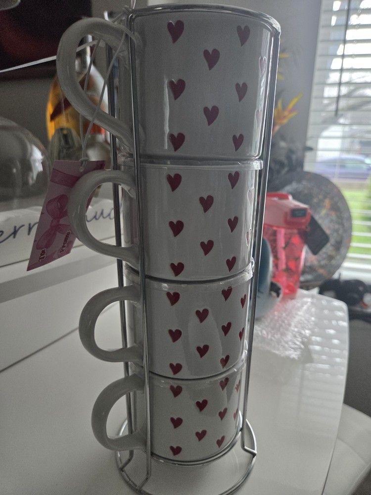 Set Of 4 Heart Pattern Coffee Mugs 13oz