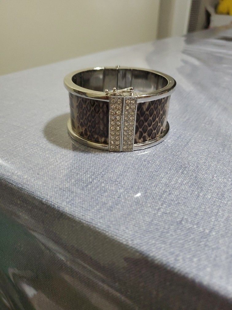 Ann Taylor Hinged Bracelet Magnetic Snake Skin Tan Brown Black Tone