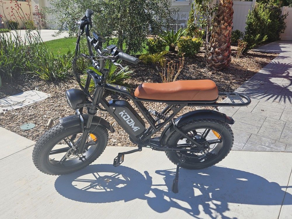 Very clean KOOMI G60 electric bike in excellent condition. Everything works great and it rides strong. Just serviced with: ✅ Brand new rear tire ✅ Brand new rear brakes Key Features: • Large 25Ah battery for extended range • Top speed around 30 MPH • Front & rear hydraulic disc brakes (excellent stopping power) • Turn signals and horn • Front suspension + rear shock for a smooth ride • Fat tires for stability and comfort • Front headlight and rear light • Rear cargo rack • Throttle + pedal assist These mini-moto style e-bikes are very comfortable and great for cruising around town, beach rides, or commuting. Bike is ready to ride and needs nothing.
