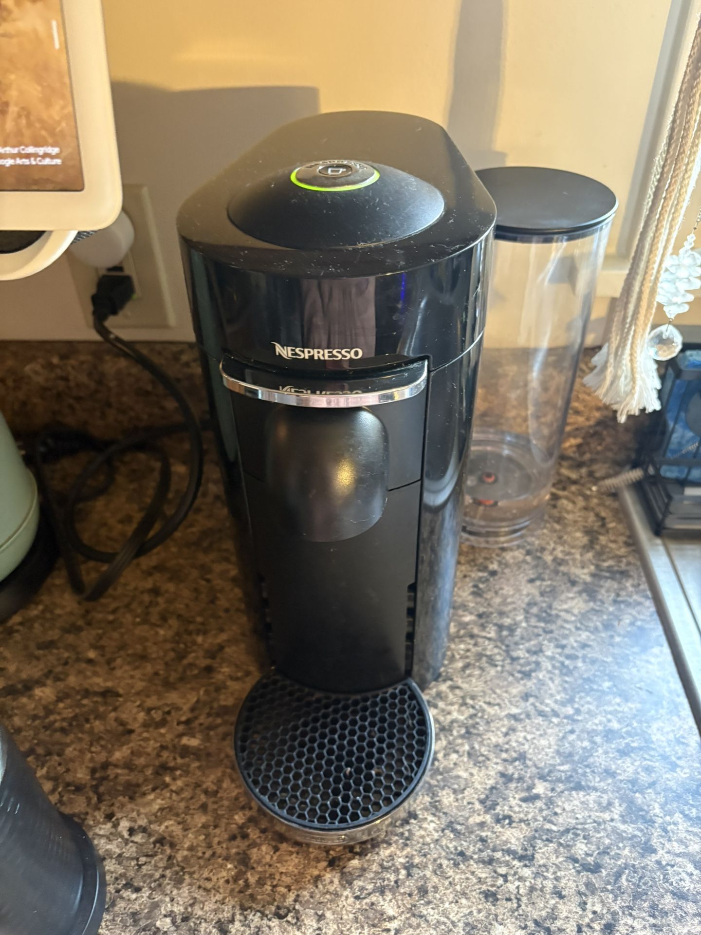 Nespresso machine, works great about 3 years old. Includes machine, Nespresso frother, pod storage, and pods! (About $30-$50 worth of pods depending on how soon it sells)