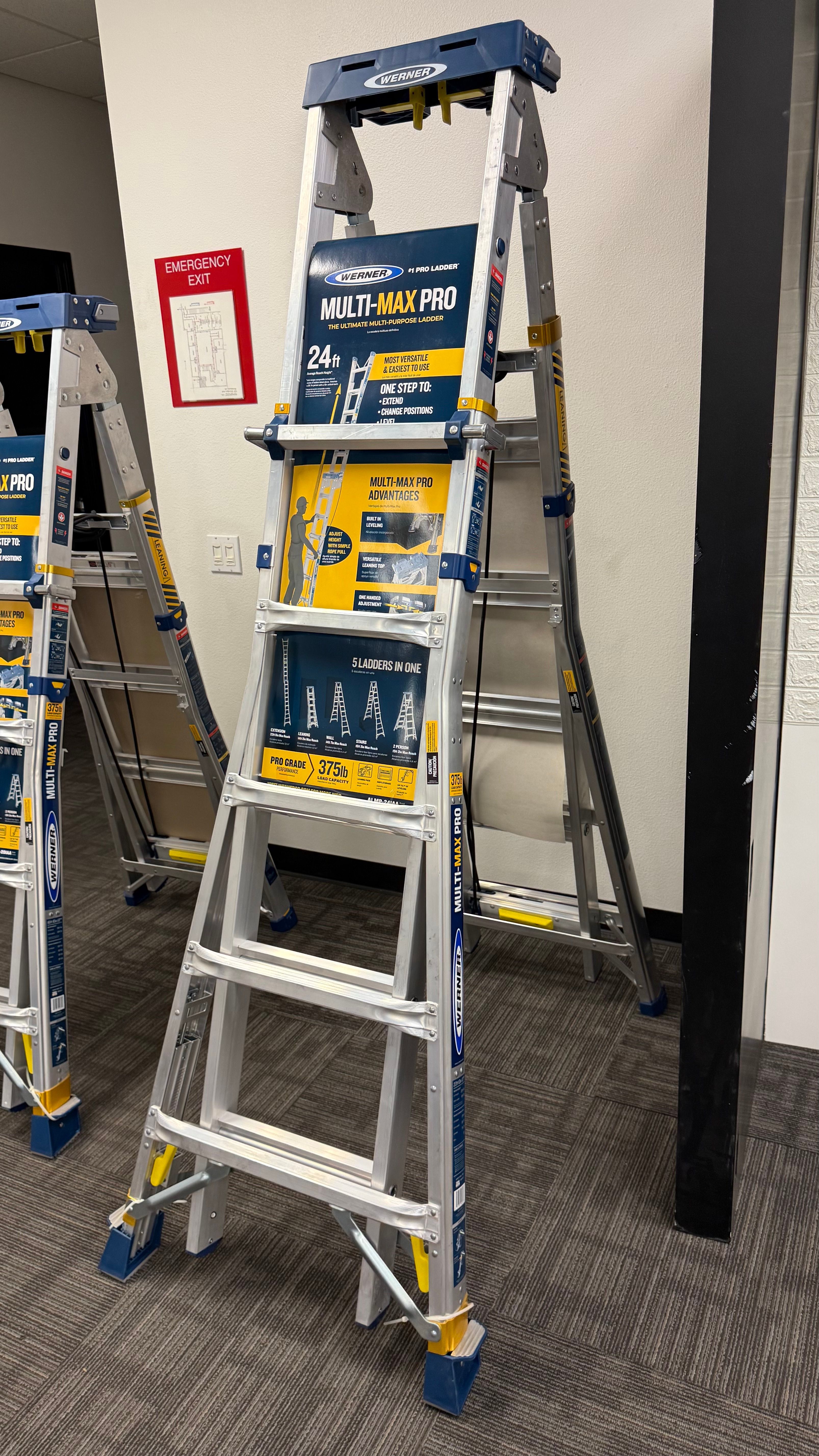 The Werner Multi Max Pro 24ft is the go-to ladder for big jobs. Designed to handle anything from roof work to interior scaffolding, it adjusts fast, locks solid, and folds compactly. ποΈ Highlights: β’ 5 ladders in one (extension, twin-step, stairway, wall, scaffold) β’ 24ft reach with pro-rates 375lb capacity β’ Heavy-duty hinges + secure locks β’ Quick adjust and compact fold for transport π³ Financing Available: $0 down | 0% interest | No credit check π Shipping: Available anywhere in the U.S. π Pickup: AWD Procurement β Riverside, CA Search tags: ladder 24ft, construction gear, multi use ladder, scaffolding, tool sale, painter ladder, 300lb rated ladder, pro contractor tools, heavy duty ladder