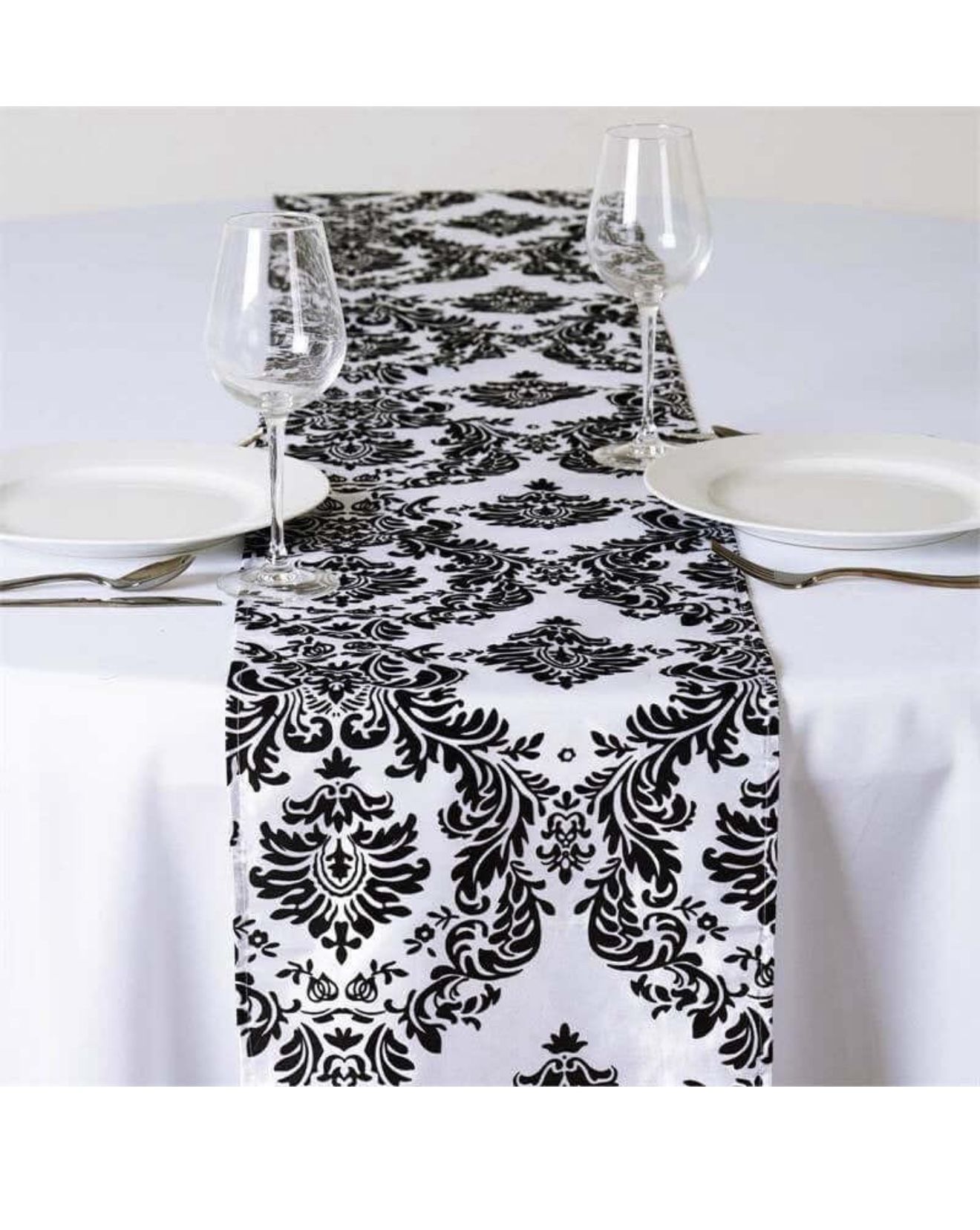 Efavormart Black Damask Flocking Premium Table Top Runner for Weddings Party Banquet Decor Fit Rectangle and Round Table