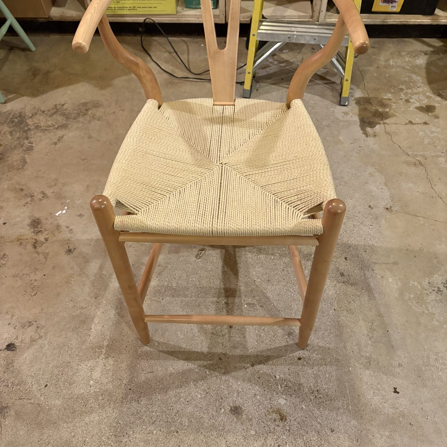 1 lightly used wishbone chair. Seat height of 28in. Total height of 38in.