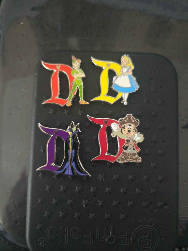 2020 rare cast lanyard hidden mickey D pin set. Prefer to sell as a set. Price is firm Peter Pan $275 Alice $200 Pirate Mickey $275 Malificent $350