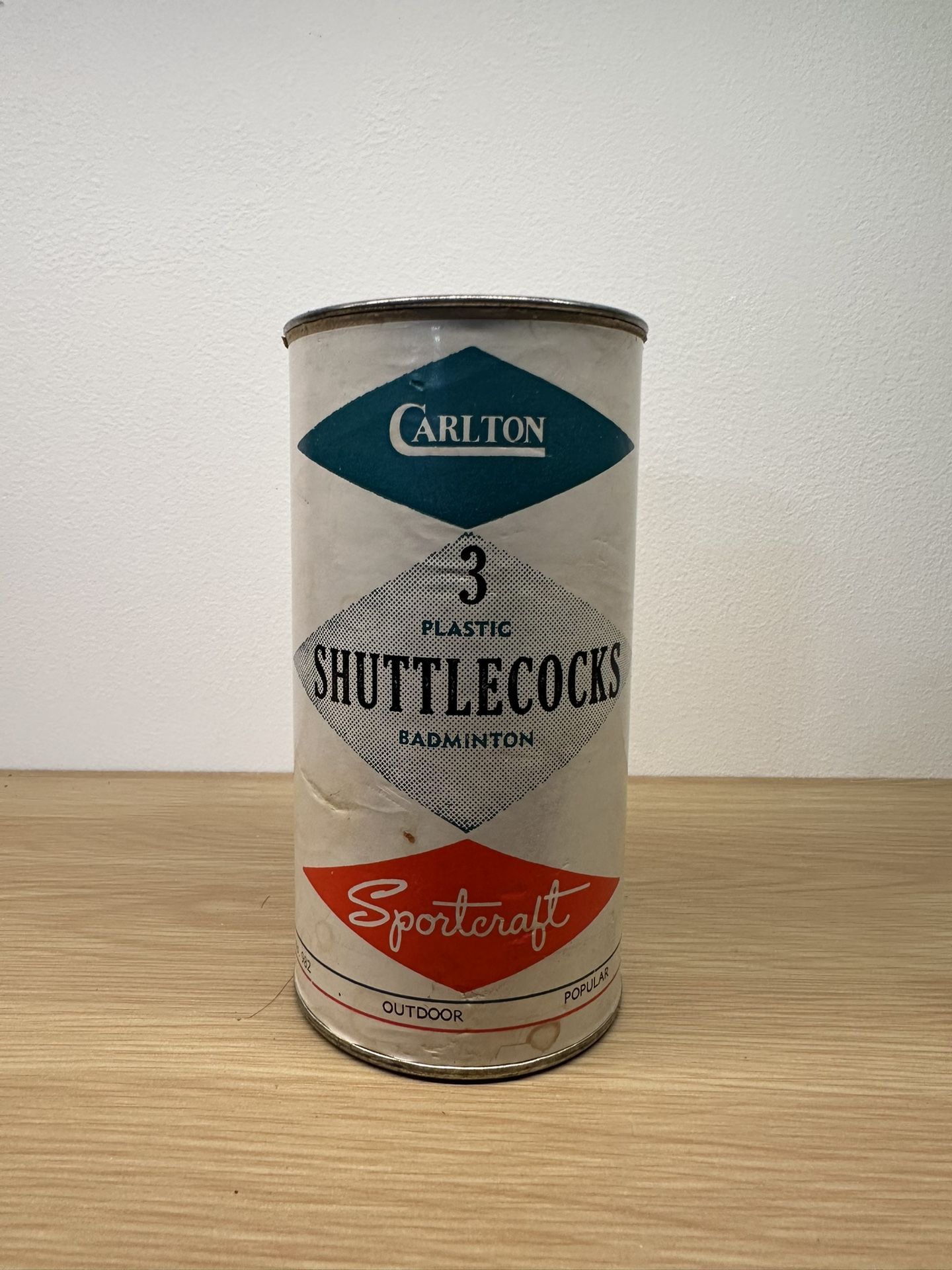 Vintage Carlton Shuttlecocks Badminton Birdies. tags: badminton, sports, vintage can, vtg bottle, sportcraft, collectible, antique, movie prop, mid century marketing, advertising