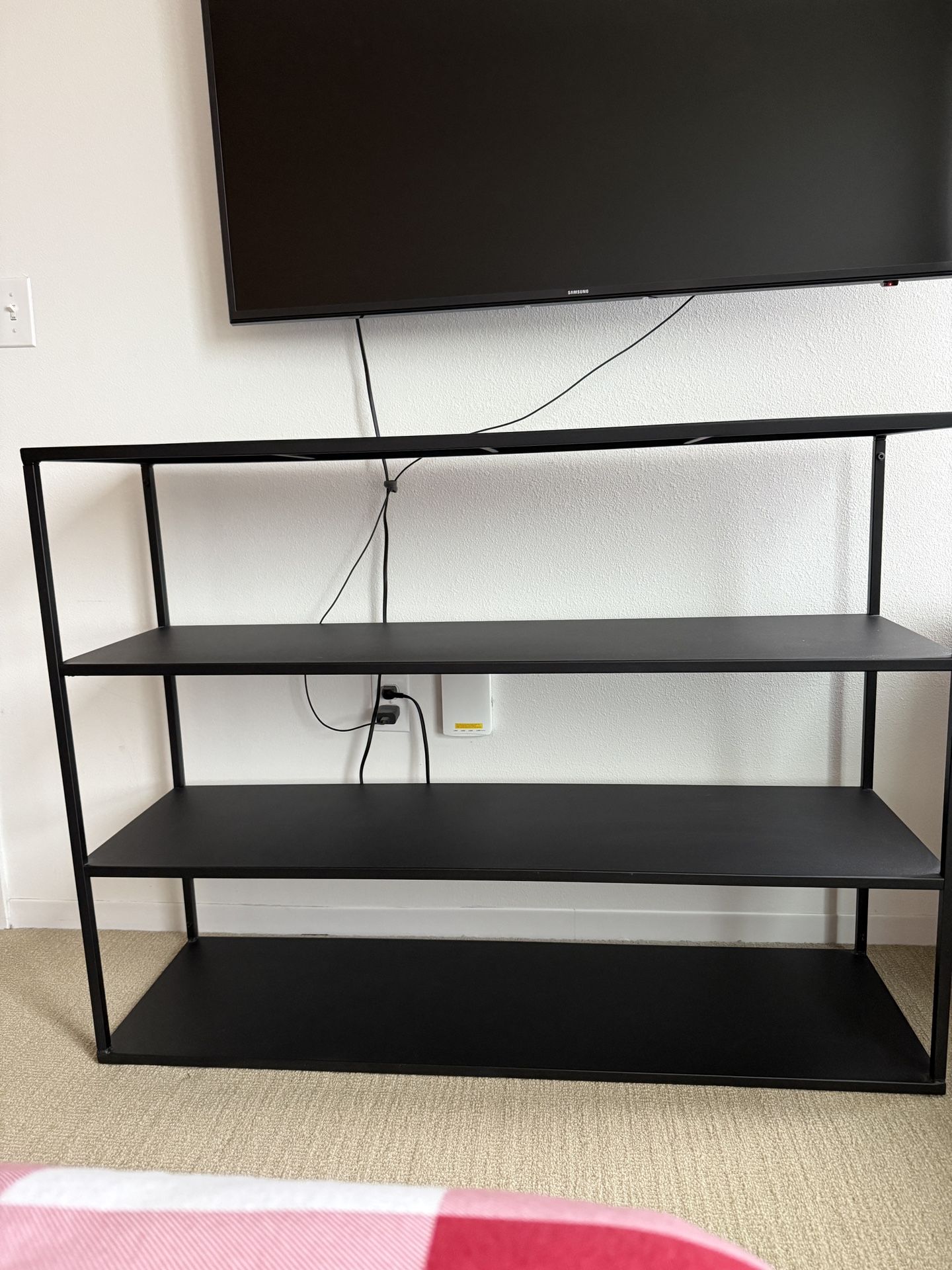 Black Metal Shelf. Good condition 48.5” x 14” x 36”