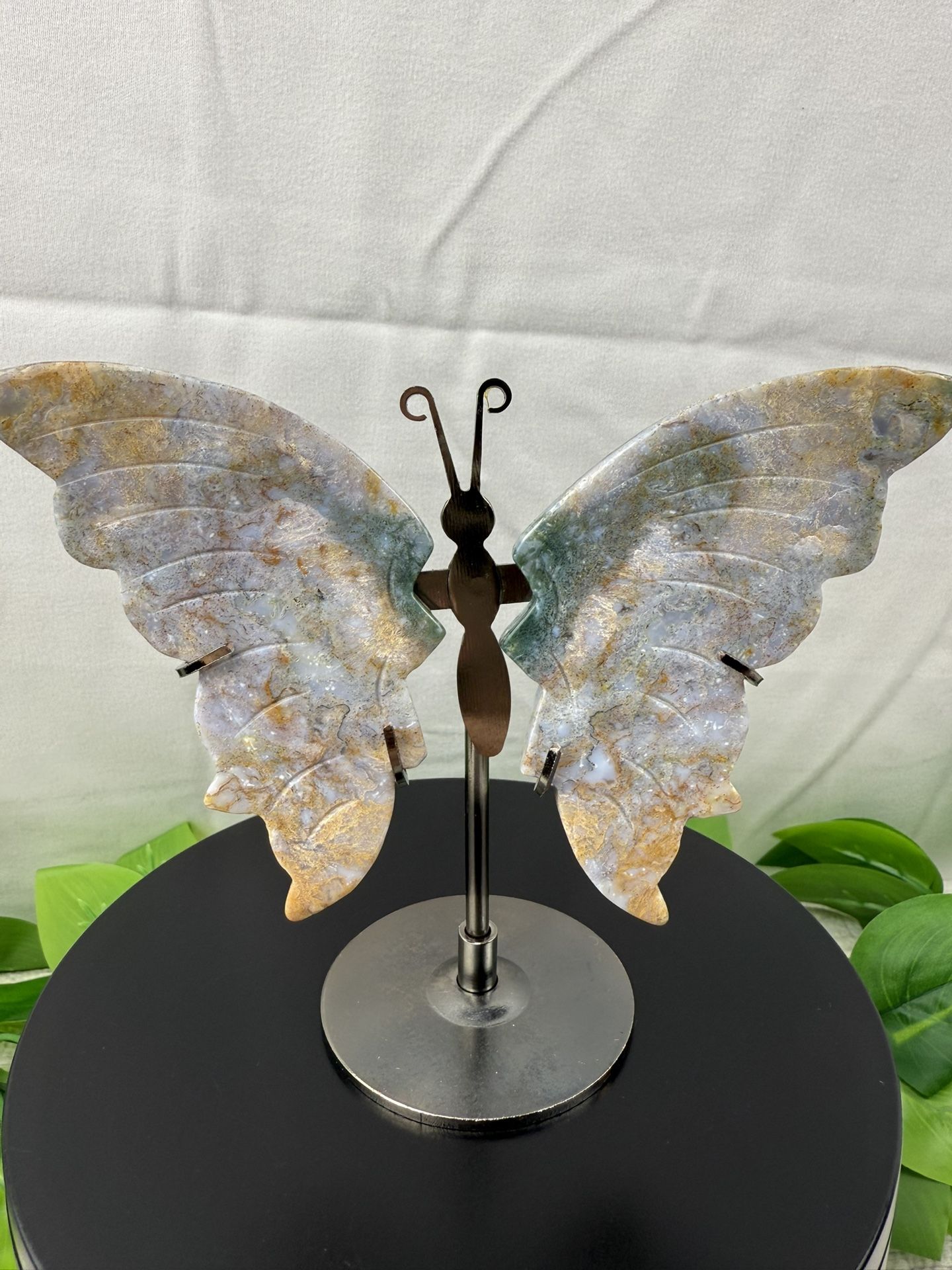 Crystal ocean Jasper wings on a metal stand with all mix colors of natural Jasper. The metal stand is leaning to the left, but the wings are perfect with some druzy. Unique piece perfect for butterfly lovers, crystal collectors or decoration. Approx: 4.45” tall 5.58” wide and 148g/5.2oz Payment methods: Cash, Venmo, PayPal Local meet up 98092, no holds. Can ship. Check out my other listings if you love crystals 💕 CRYSTALS CAN APPEAR LARGER IN PHOTOS THEN IN REAL LIFE. PLEASE REFER TO THE DIMENSIONS LISTED‼️