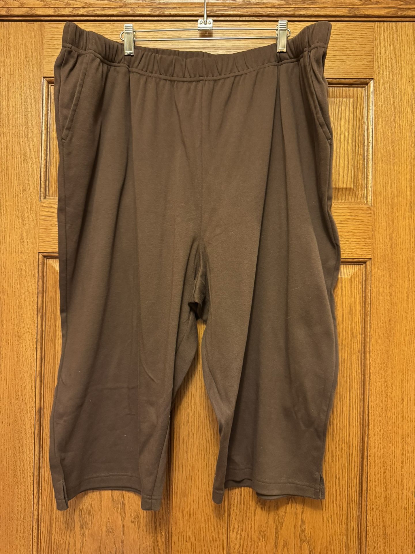 NWOT women’s ROAMANS Solid All Brown Pull On Capri pant Plus Sz 30/32 -3X