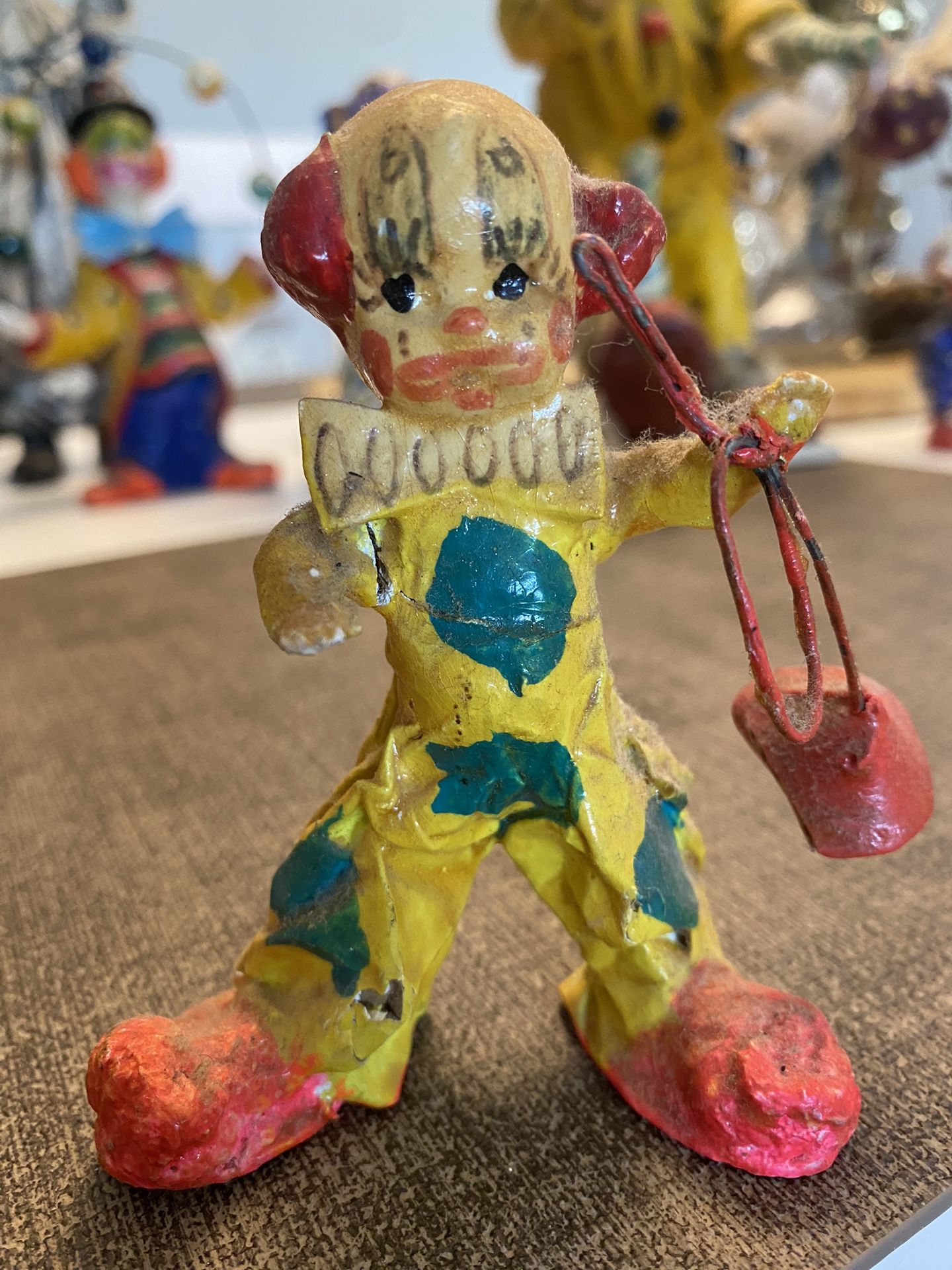 Vintage Paper Mache Clown With Bag Hand Made And Painted stands alone fragile