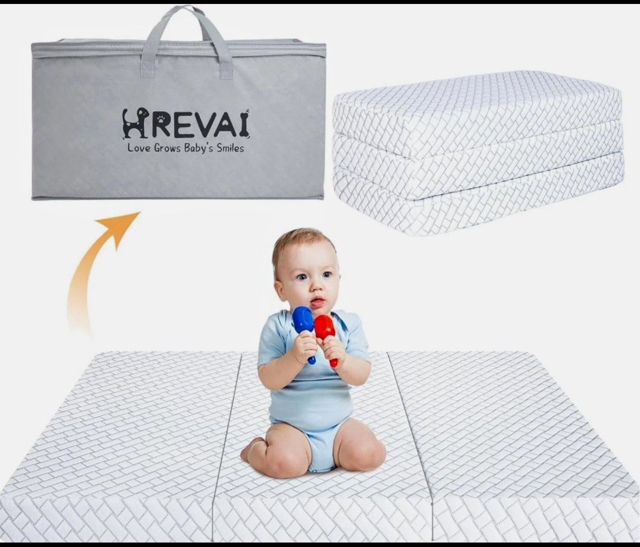 Brand New, Never Been used or opened from packaging. HREVAI Dual-Sided Pack N Play Mattress – 38 x 26" Memory Foam Travel Crib Mattress with Removable Cover & Carry Bag Give your baby the comfort they deserve with the HREVAI Dual-Sided Pack N Play Mattress, designed to fit standard pack and plays (38" x 26"). This portable crib mattress features plush memory foam on one side and a firmer support layer on the other—ideal for infants and toddlers alike. The breathable, antimicrobial cover is easily removable and washable for added convenience. It also includes a travel-friendly carry bag, making it perfect for families on the go. Key Features: Dual-Sided Design: Soft plush top for toddler comfort and a firmer side for infant support Memory Foam Fill: Provides gentle contouring and support Breathable & Antimicrobial: Promotes air circulation while resisting bacteria buildup Removable Cover: Easy to zip off and machine wash Portable: Includes a convenient carry bag for travel Product Details: Brand: HREVAI Size: Crib (38" x 26") Dimensions: 96.52 x 66.04 x 7.57 cm Item Weight: 1.73 kg (3.82 lbs) Firmness: Plush Colour: White Top Style: Plush top Customisable: No Whether at home or on the go, the HREVAI mattress delivers restful sleep and peace of mind.