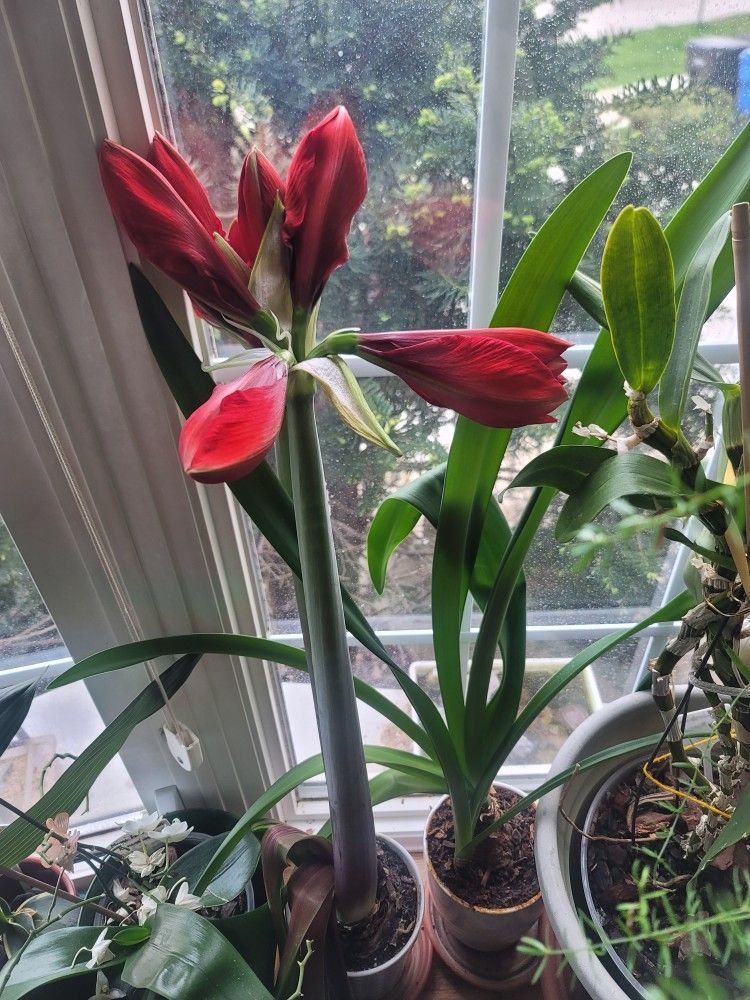 Amarylis czerwony "Red Lion", (Amaryllis) Kwiat pokojowy cebulowy, kwitnie co rok.