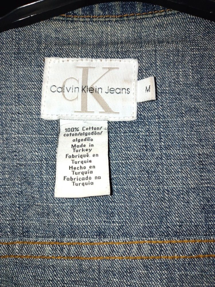 A Genuine Calvin Klein Denim Jacket a size Medium been worn I will Dry Clean before Shipping In Very good condition