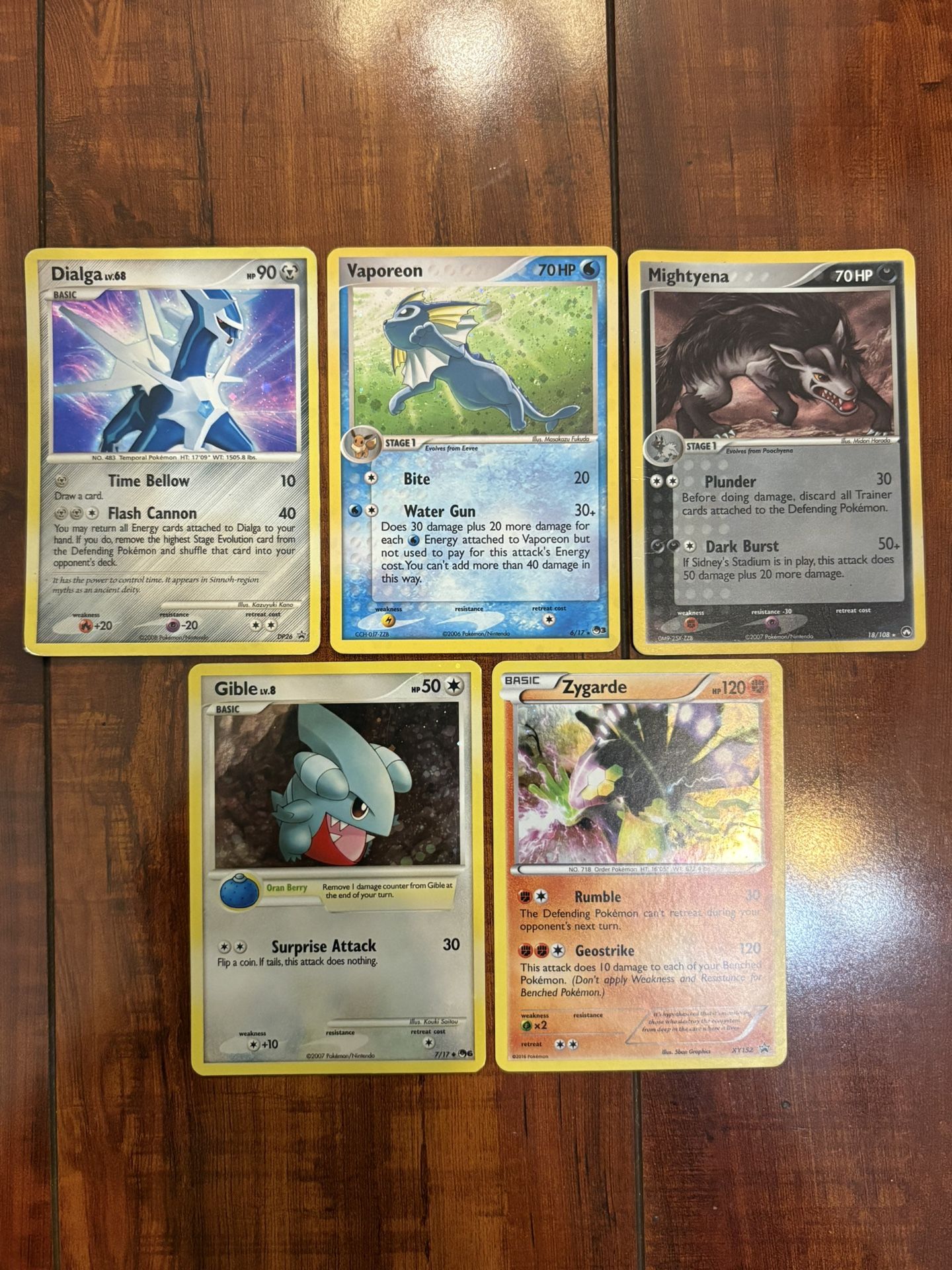 Pokemon Semi Vintage Holo Lot of 5 Dialga, Vaporeon, Mightyena HP/Damaged