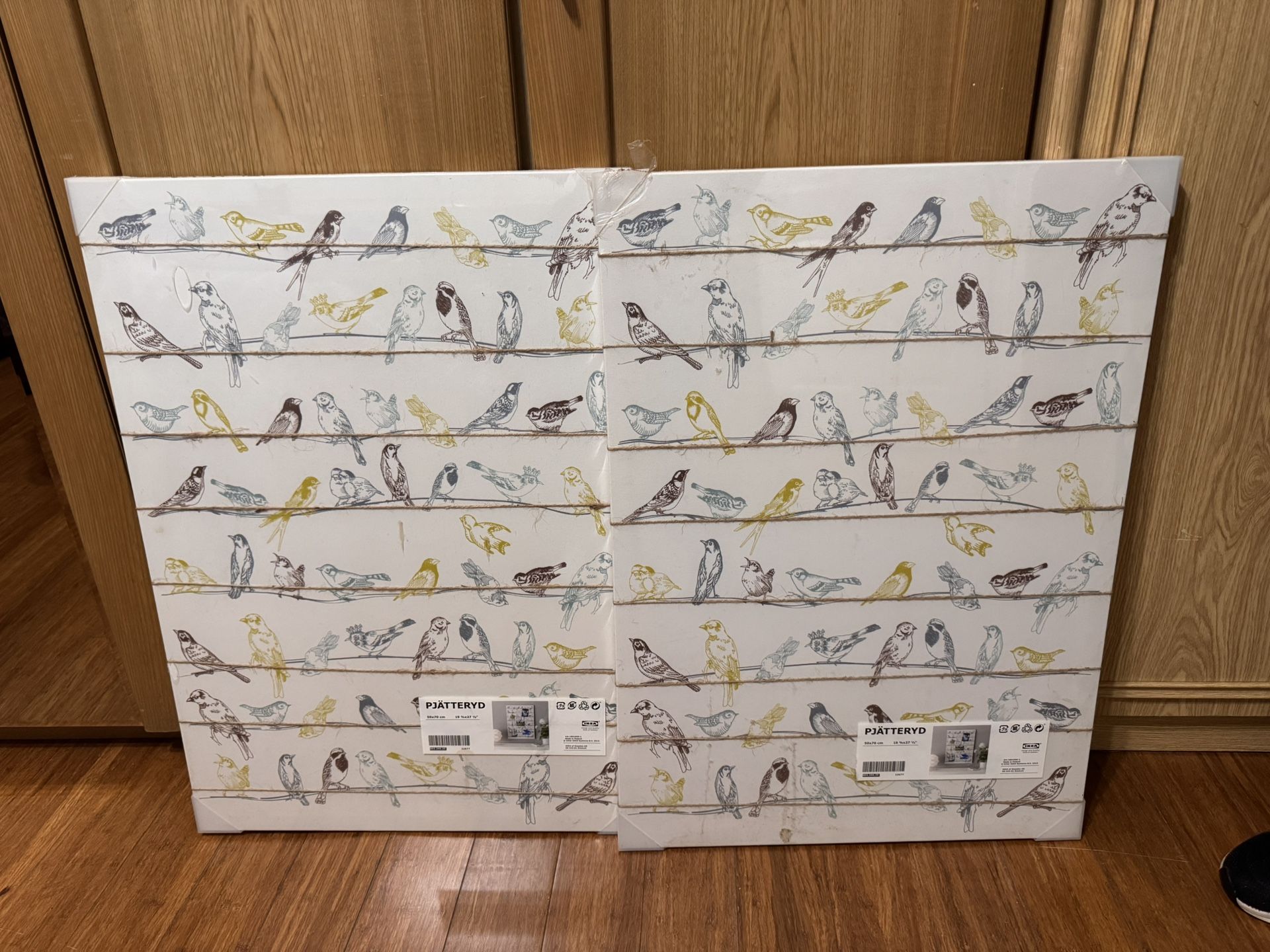 2 IKEA Canvas artwork Not opened. Has twine ropes to hang photos or notes. $10 each or $20 for both