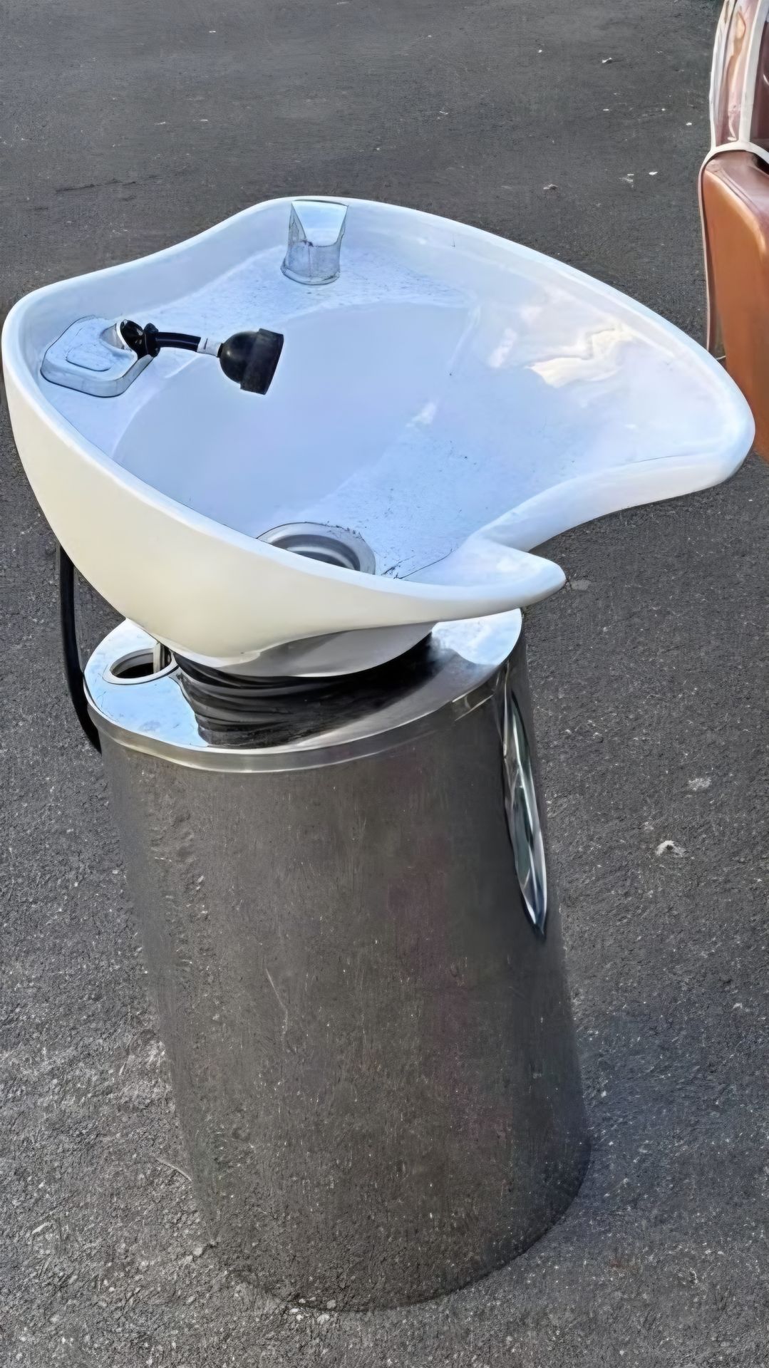 Montego Pedestal Shampoo System-White Bowl (chair not included) Description *Unit must be mounted to the floor. Mounting bracket installed and concrete anchors are included. The Montego Backwash Pedestal Unit features a stainless steel cabinet, ceramic tilting bowl, faucet, soft spray hose, silicone neck rest, drain assembly with strainer, and mounting brackets. Included UPC valve has built-in backflow preventer. Please review your local plumbing codes to verify if any additional fixtures are required. Bowl Dimensions: 19.75"W x 20.25"D Shroud Dimensions: 14"W x 16"D x 24"H Access Panel Dimensions: 7"W x 13.5"H, 2" off floor