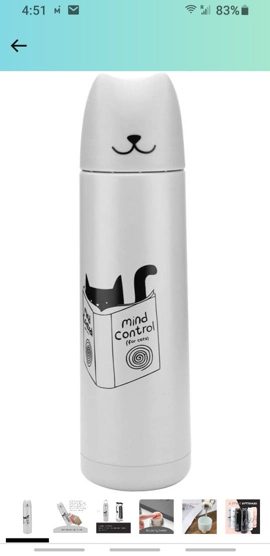 Mini Vacuum Mug Cute Thermos ,2019 New Stainless Steel Hot Water Bottle Travel Cup,304 stainless steel milk mug coffee tea (Gray Cat) (DAYUN)