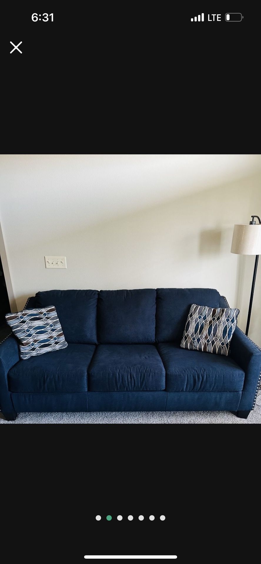Beautiful blue pull out couch The mattress is not included Comfortable and perfect for a small space
