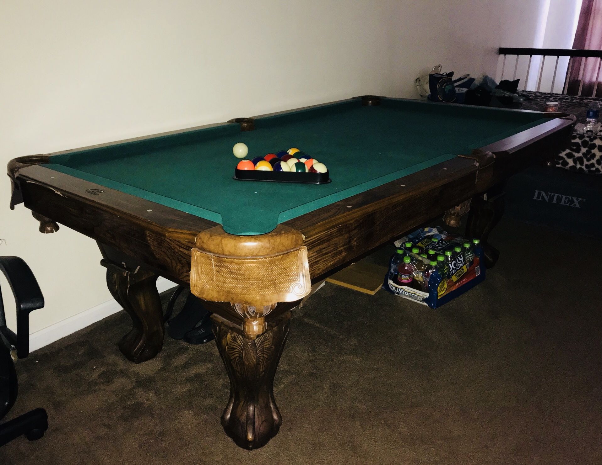 Used EastPoint Sports® 7ft 5in (89.5in) Brighton™ Billiard Table with minimal scratches. Complete with 2 Wooden Cues, 1 Set of Billiard Balls, Chalk, Billiard Triangle, and Table Brush, you have everything needed to start playing in no time! The table is as pictured. $130 or best offer. Serious inquires only please.