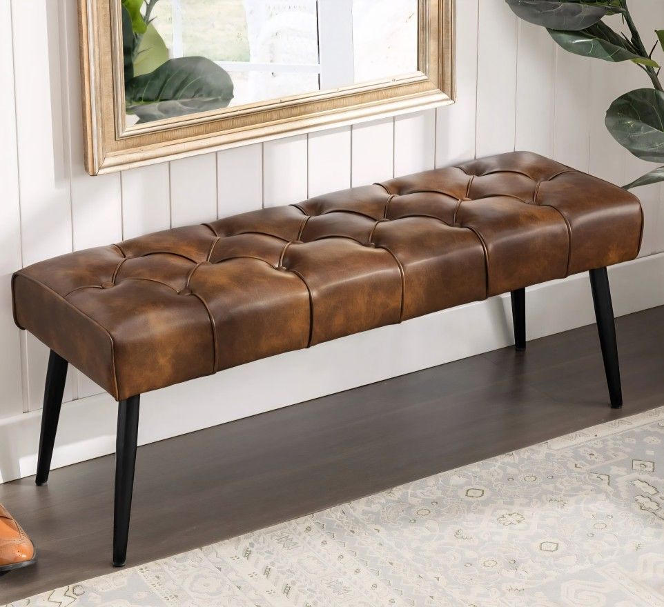 New and assembled. Tufted Upholstered Faux Leather Bedroom Bench, ottoman bench.