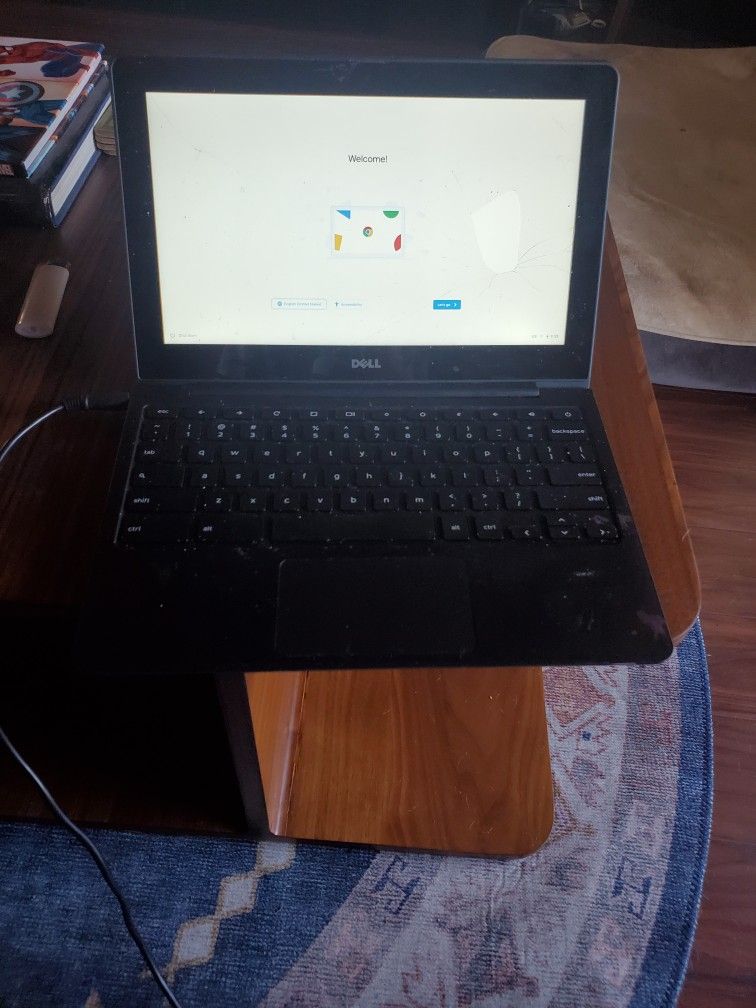 Work greats. Screen is broken. Replaced the screen once already. Good for parts or if you are ok with the back not properly staying closed. Comes with charger