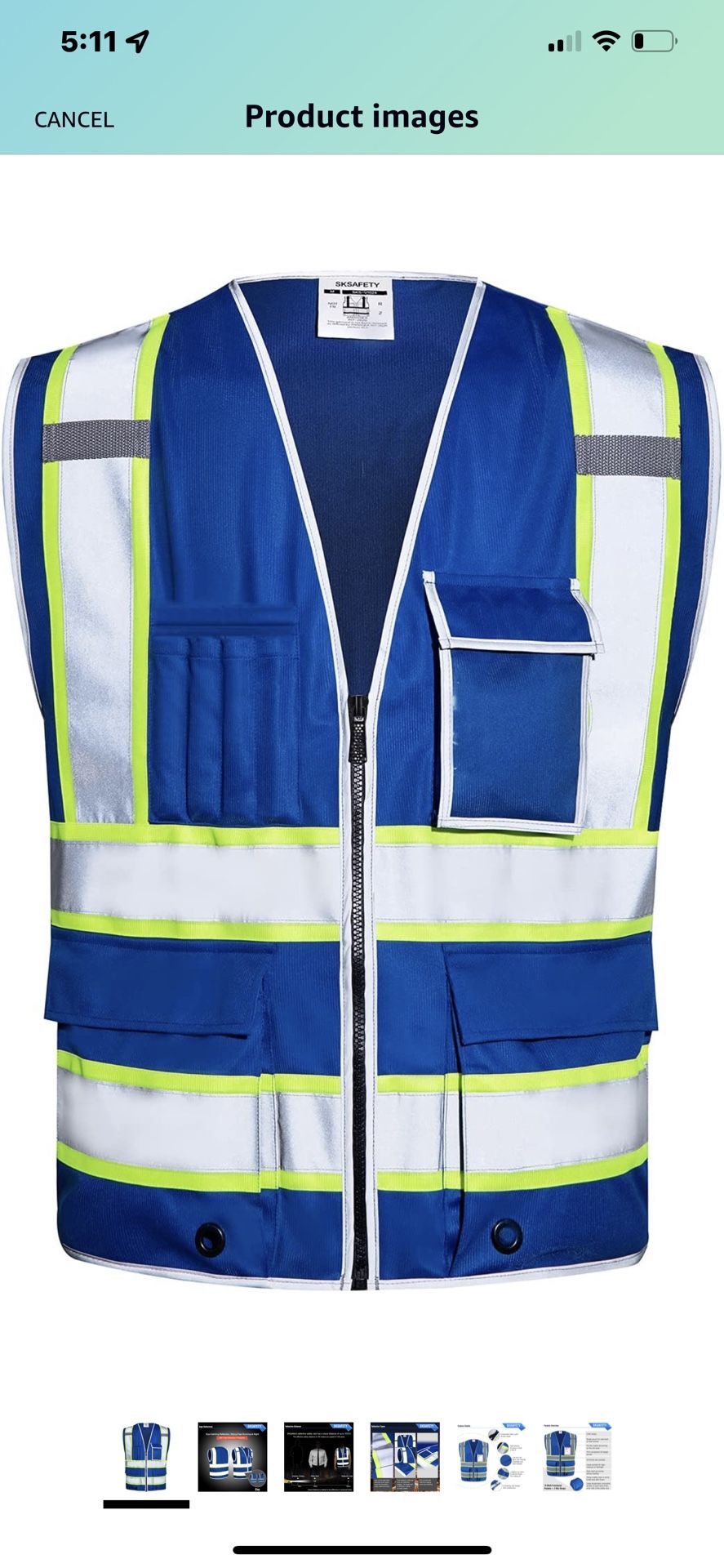 Blue Safety Vest With 10 Pockets, Zipper Front, Surveyor/Construction Reflective Safety Vests For Men & Women, High Visibility Work And Running Vest,