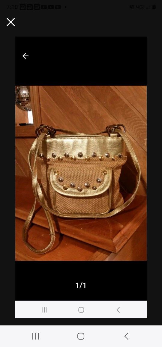 $20 EACH!! VINTAGE HANDBAGS: 1) GOLD LEATHER WITH INTERIOR POCKET~ 2) BLACK WITH GOLD ROPE POUCH ~ FIRM PRICE ~ LOCATED IN LYNNFIELD